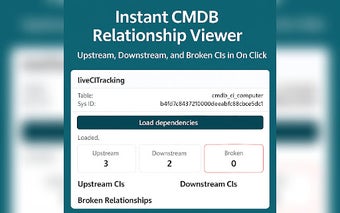 liveCITracking es una extensión ligera diseñada para profesionales de ServiceNow que manejan datos de CMDB, Discovery y el ciclo de vida de los CI. Esta herramienta permite detectar automáticamente el CI que se está visualizando y ofrece una instantánea completa de relaciones, duplicados, salud y cumplimiento con un solo clic. La interfaz es intuitiva y facilita el acceso a información crítica para la gestión de la infraestructura de TI.